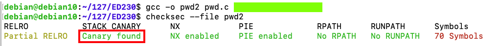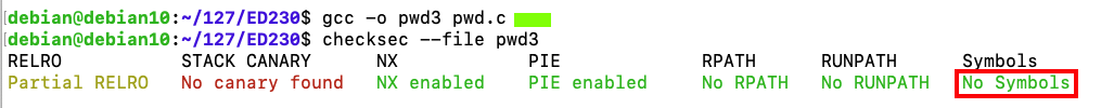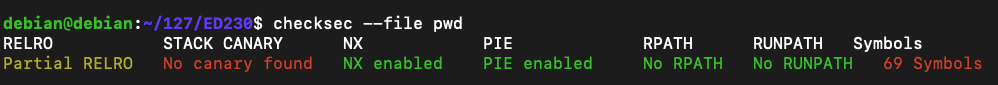 You see a list of defenses, and whether they are implemented, as shown below (I trimmed some fields on the right).sudo apt-get install checksec -y checksec --file pwd