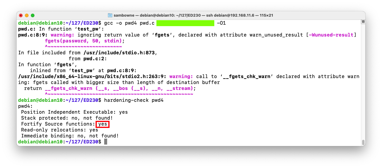 Find the gcc flag needed to "Fortify Source functions", outlined in red in the image below.The flag is covered by a green rectangle in the image below.