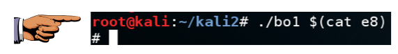 If the exploit works, you will see the "#" prompt, as shown below../bo1 $(cat e4)