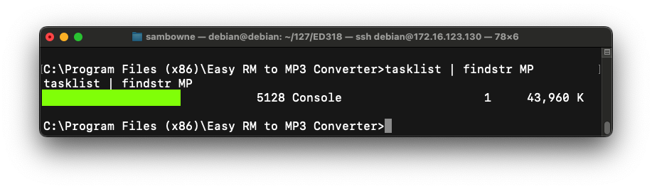 In the Terminal window, execute this command to run the program, and put the output into a file named ezm-fuzz2.m3u: