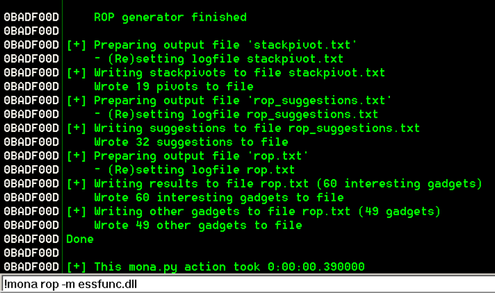 from the Immunity menu bar, click View, Log.!mona rop -m essfunc.dll