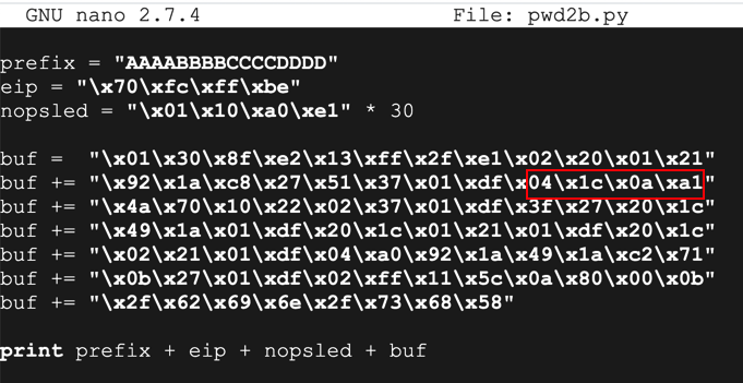 nopsled = "\x01\x10\xa0\xe1" * 30