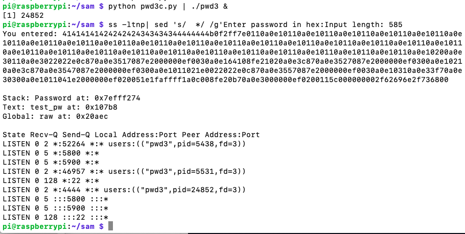 printf("Stack: Password at: %p\n", password);
