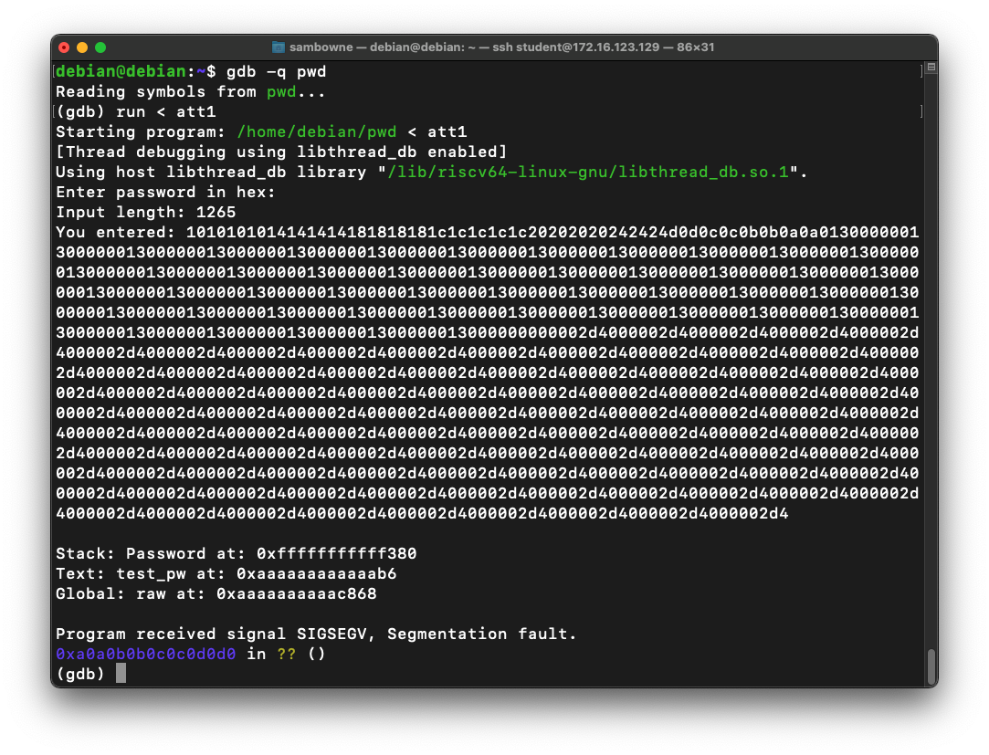 Run the "pwd" program several times again with a password of aa. The password address is now the same every time, as shown below.sudo su - echo 0 > /proc/sys/kernel/randomize_va_space exit