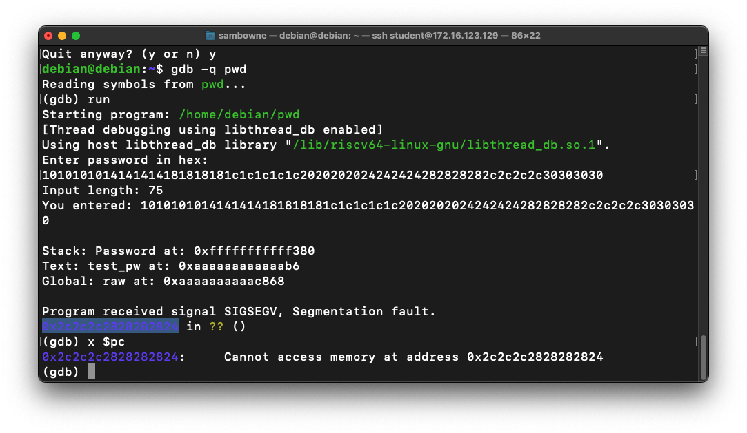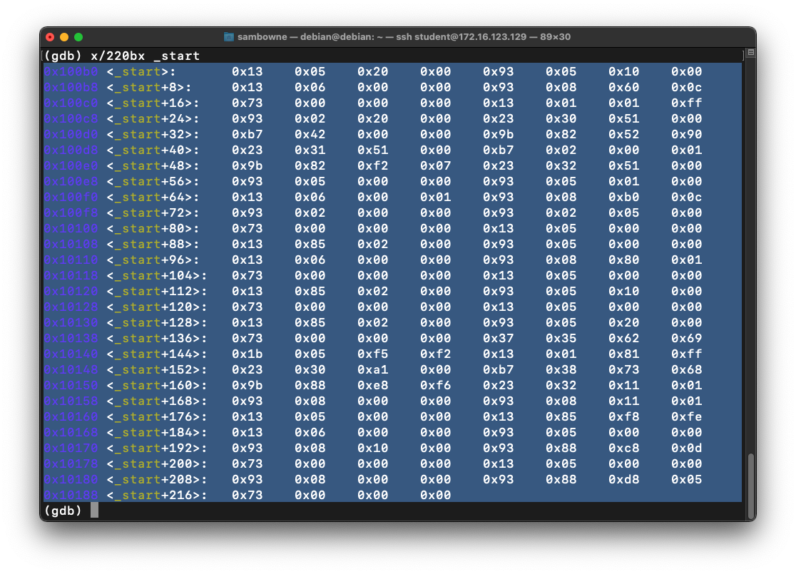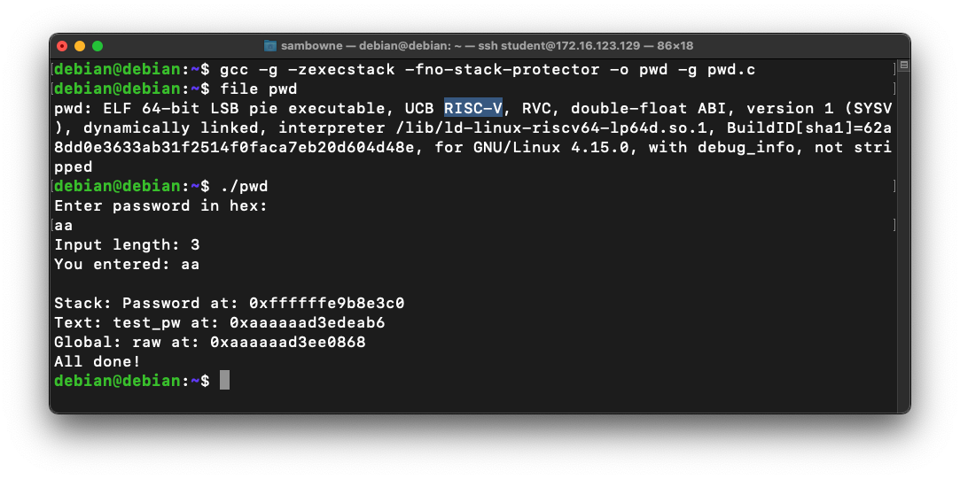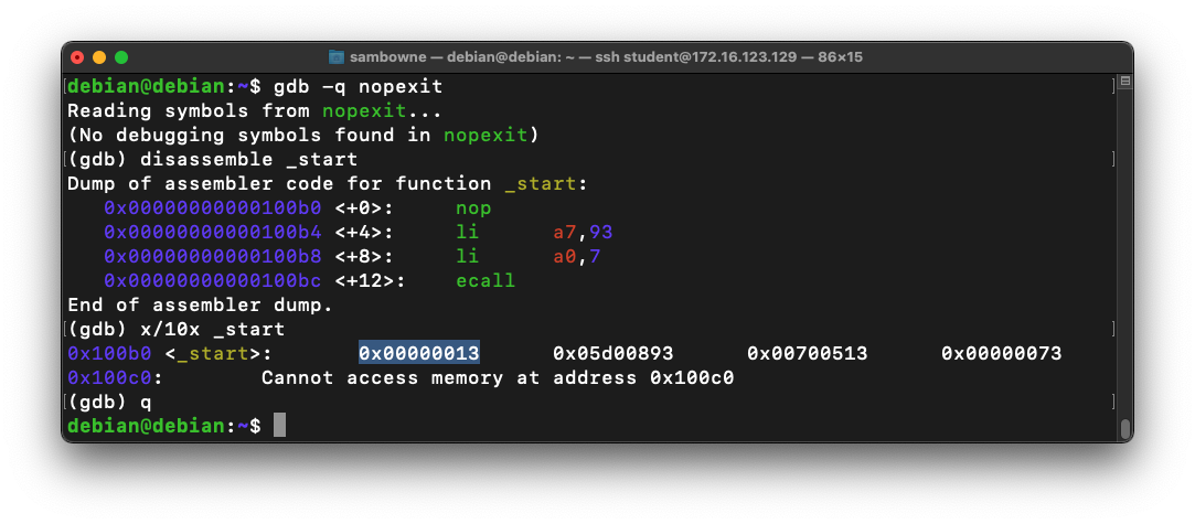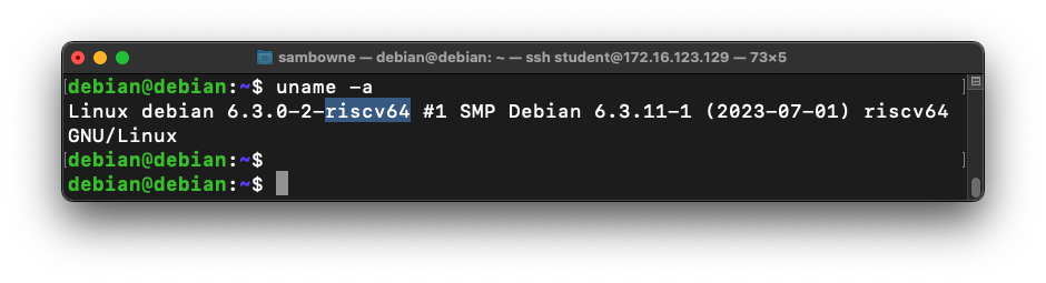 On your RISC-V emulated machine, in an SSH window, at the debian@debian:~$ prompt, execute this command:
