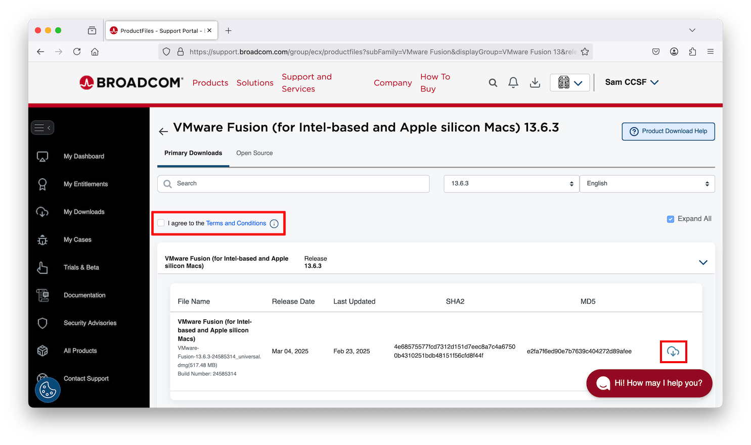 If you don't already have a Broadcom login, at the top right, click the LOGIN button and click "Broadcom Support".