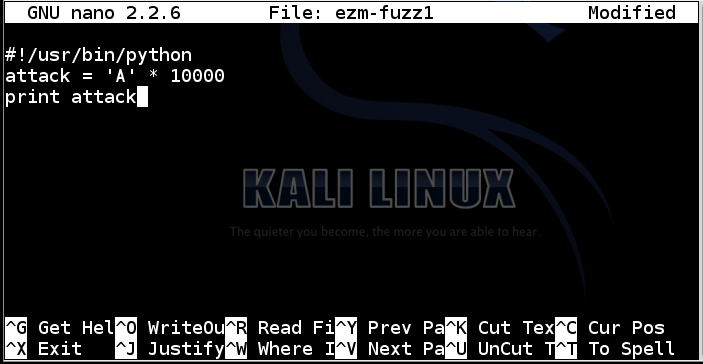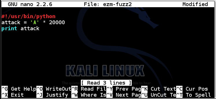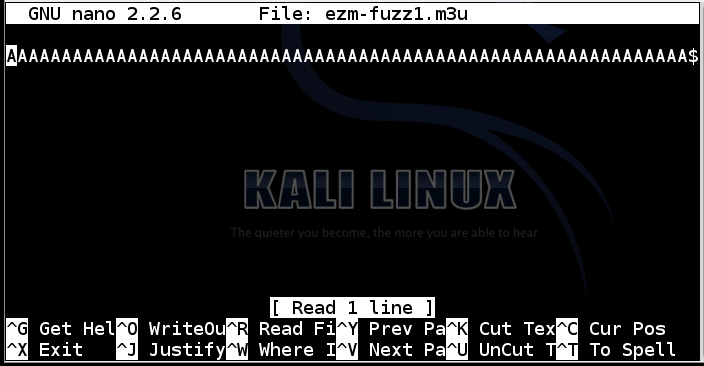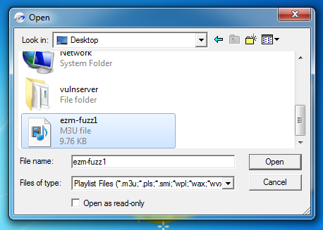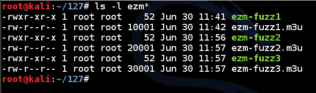 create an attack file named ezm-fuzz3.m3u,
