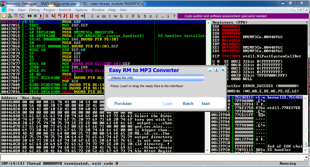 "Easy RM to MP2 Converter" opens in Immunity, as shown below.