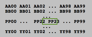 AA00 AA01 AA02 ... AA98 AA99