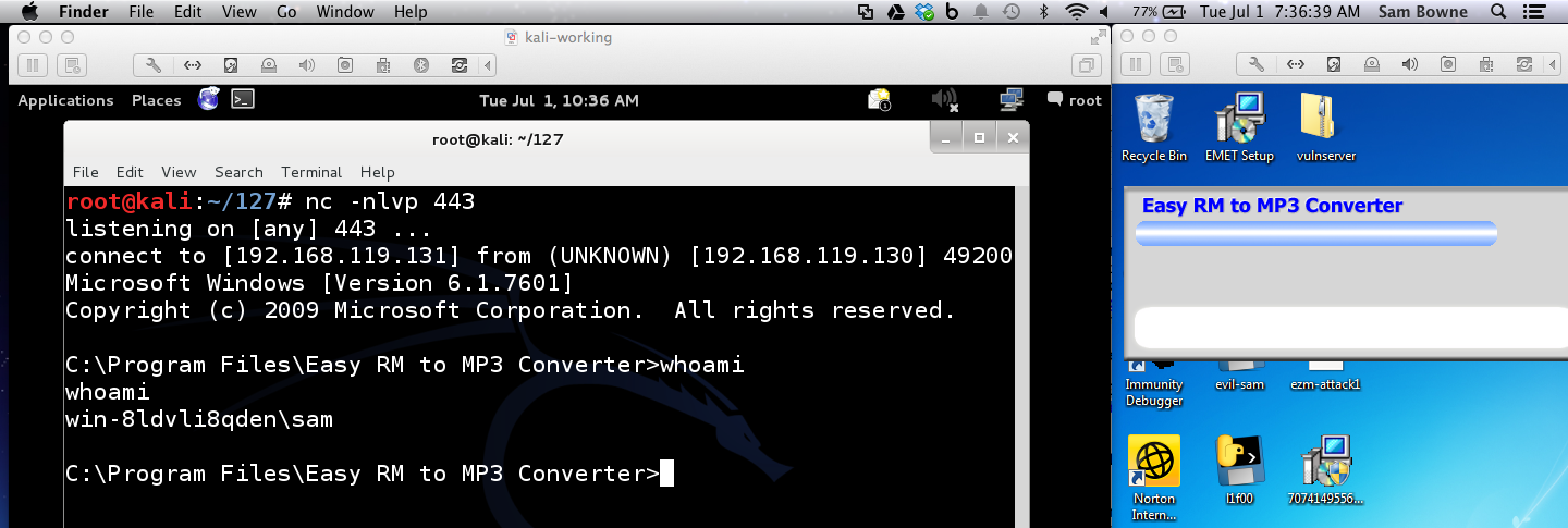 Drag the file from the Kali desktop to the desktop of your host machine. If you are using a Windows 7 host as the target, you're done.