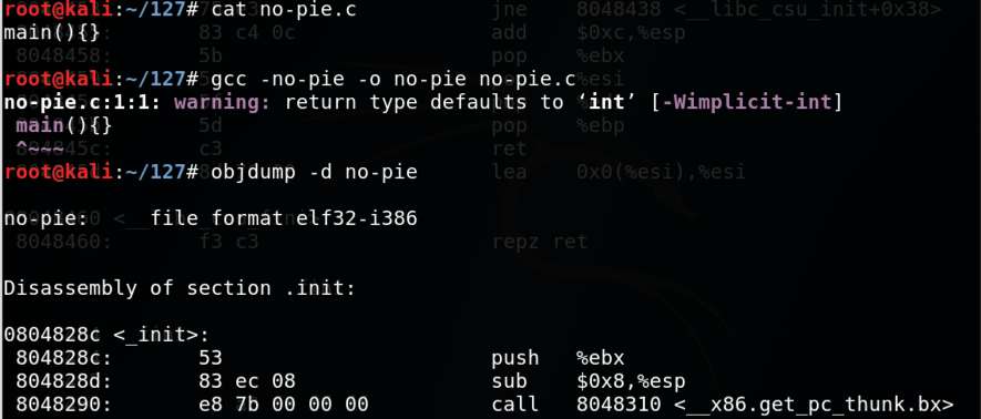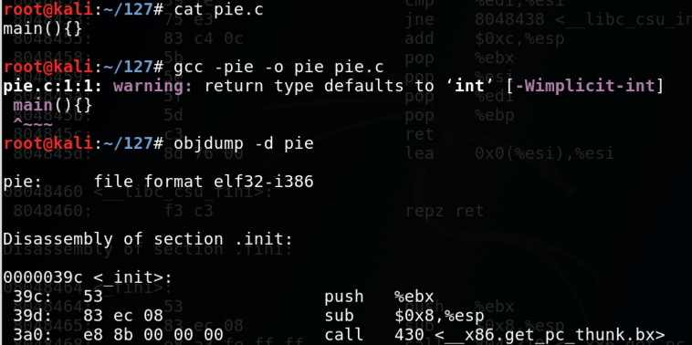 If you have Kali 2016.2 and run updates, it changes the default gcc compiler option to -pie, so it produces Position Independent Executables.