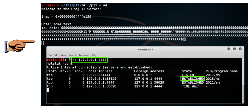 To see the effect of the exploit, open a new Terminal window and execute this command: