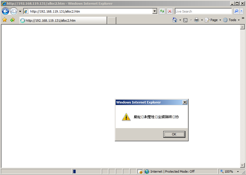 You see an alert box, containg non-English characters corresponding to the Unicode data, as shown below.