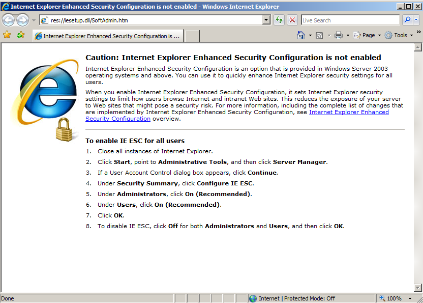 On your Windows target machine, in Internet Explorer, click in the window and type Ctrl+O