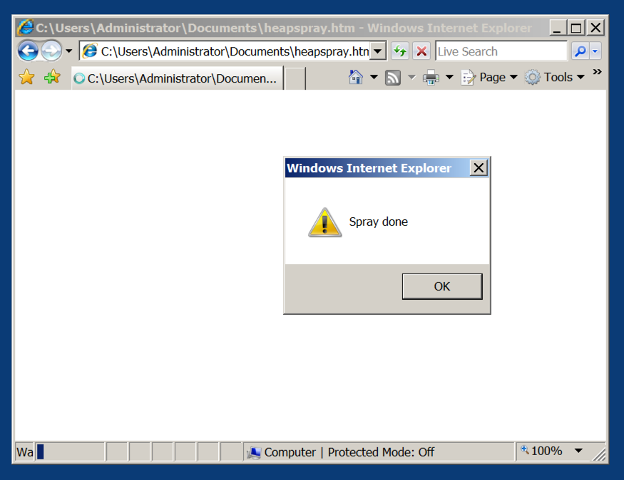 Open Internet Explorer open the heapspray.htm file, as you did previously.