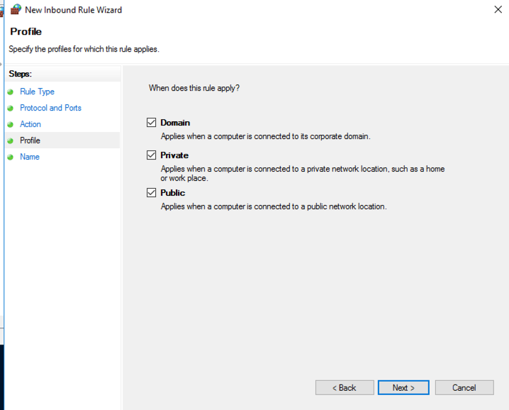 On the "Profile" page, accept the default selections, as shown below. Then click Next.
