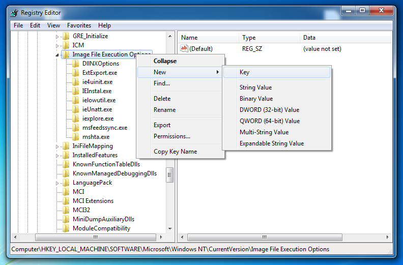 In the right pane of Regedit, right-click in the empty space and click New, "DWORD (32-bit) VALUE", as shown below.