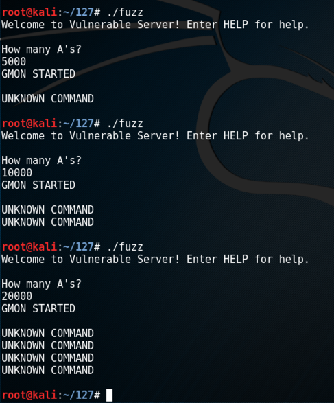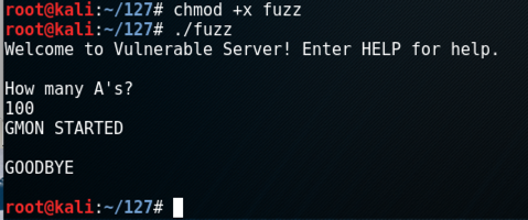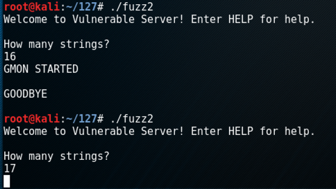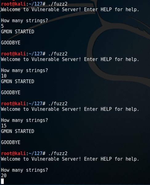 On your Kali machine, press Ctrl+C to end the "fuzz2" process.