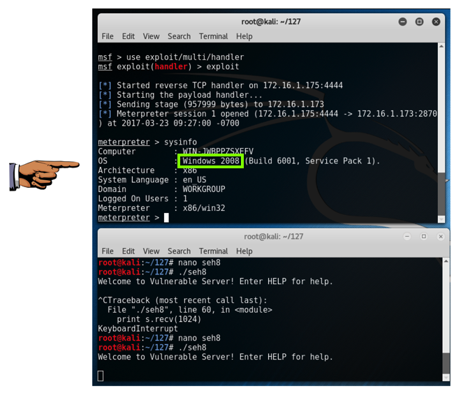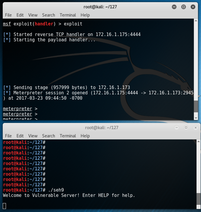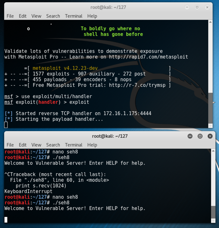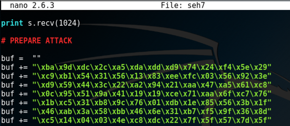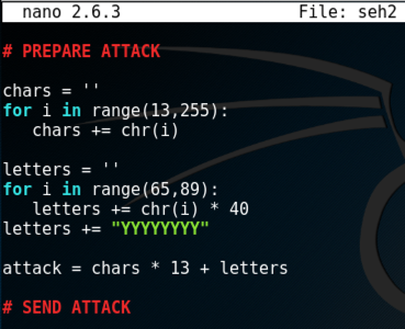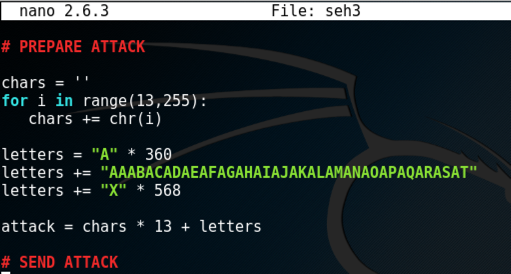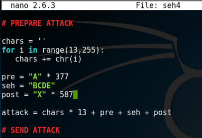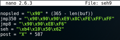 Ctrl+C to terminate the old attack. Then execute these commmands to create a "seh9" file and edit it.