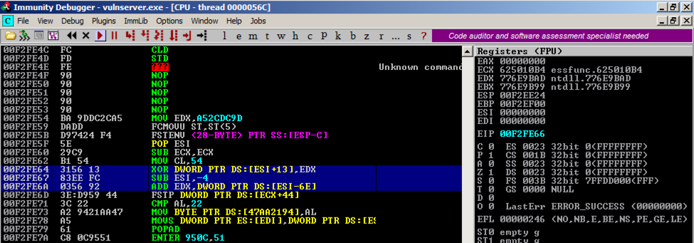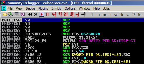 On the left side, find an address in your NOP sled. When I did it, that address was 00F2FE50.