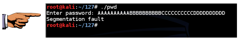 The "Segmentation fault" message indicates a buffer overflow.