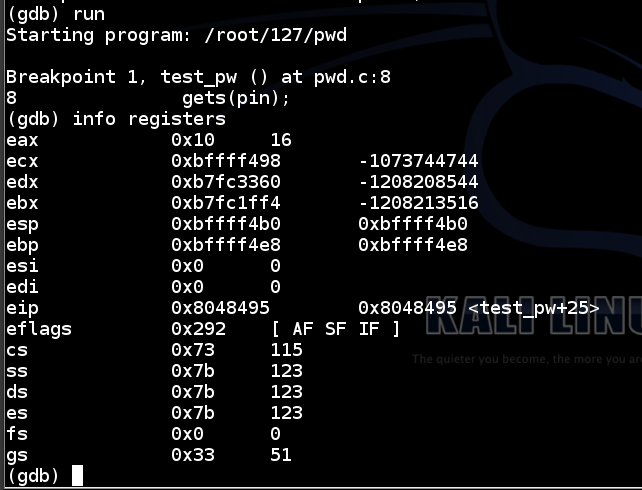 gdb ./pwd list 1,12 break 8 break 10