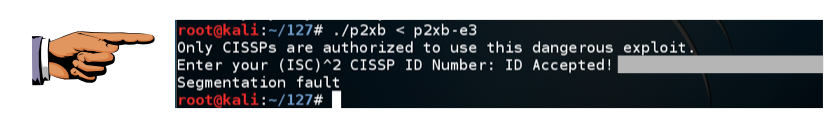 Enter AA as a CISSP ID. The ID is rejected.curl https://samsclass.info/127/proj/p2xb > p2xb chmod a+x p2xb ./p2xb