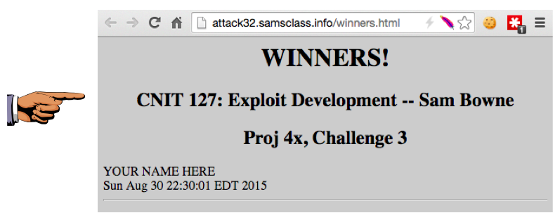 Make sure YOUR NAME (or an alias) is visible on the WINNERS page.