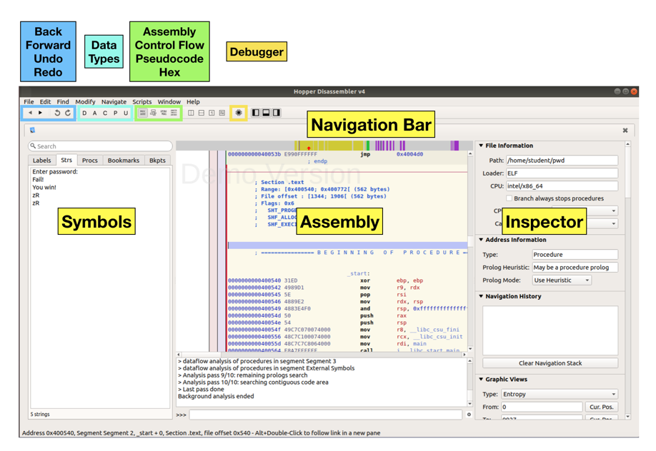 The first pass looks at the code as a series of Assembly Language instructions. This is the most basic function of a disassembler.