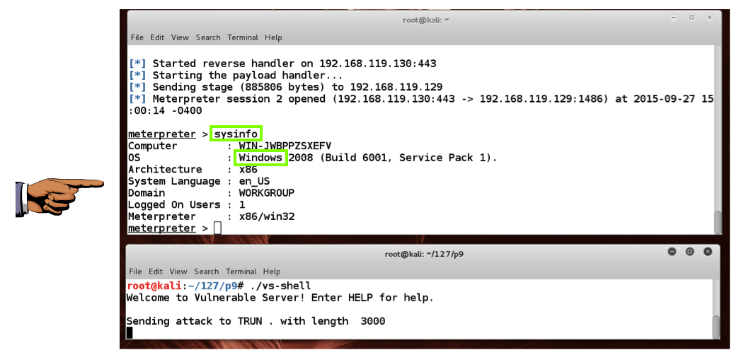 On your Kali Linux machine, in the Terminal window, type EXIT and press Enter to close your connection to Vulnerable Server.