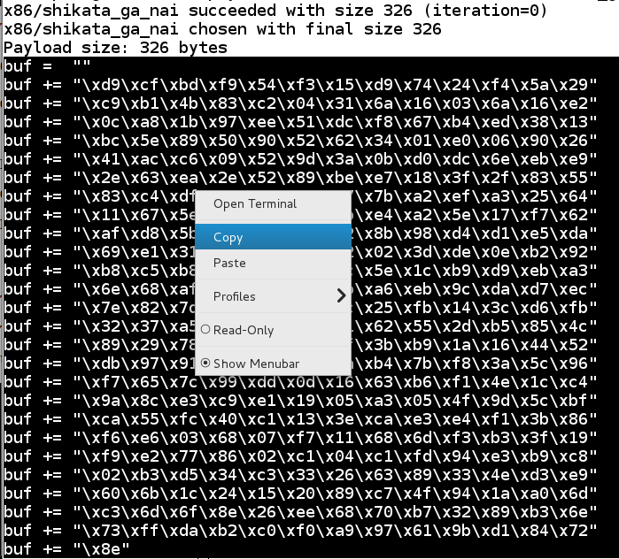 Use the mouse to highlight the exploit code, as shown below. Right-click the highlighted code and click Copy.
