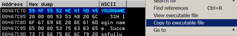 Right-click the highlighted bytes. Then point to Binary, and click Edit , as shown below.