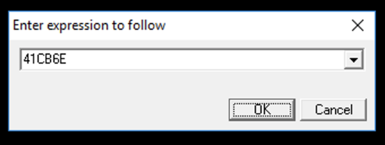 Immunity finds another line of code that uses this string, as shown below. This instruction is at address 0041CB6E.