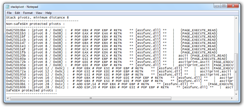 This means the EIP was controlled by the four bytes starting with EC in the 253-byte pattern. Hexdecimal EC = 14*16 + 12 = 236, but this attack pattern skips bytes 00, 0A, and 0C, so it's actually 233 bytes into the region.
