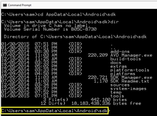 The SDK path appears in the last line, as highlighted in the image above. It will be something like this: