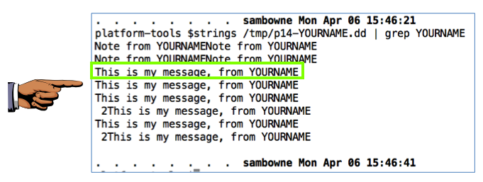 strings /tmp/p14-YOURNAME.dd | grep YOURNAME