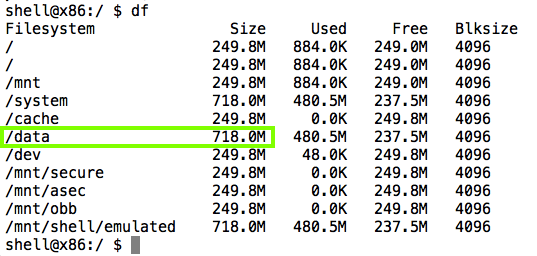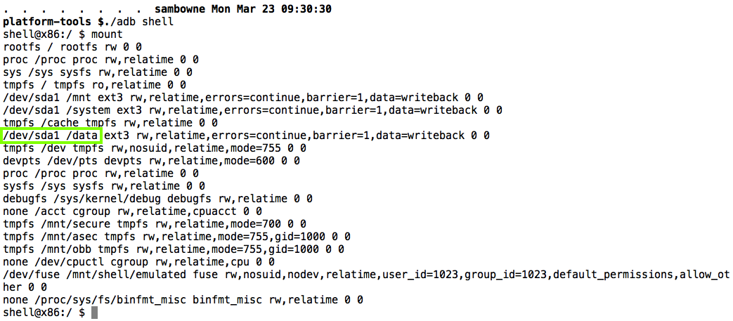 The /data partition is at /dev/block/sda1, as highlighted in the image above.