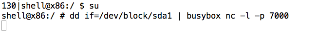 dd if=/dev/block/sda1 | busybox nc -l -p 7000