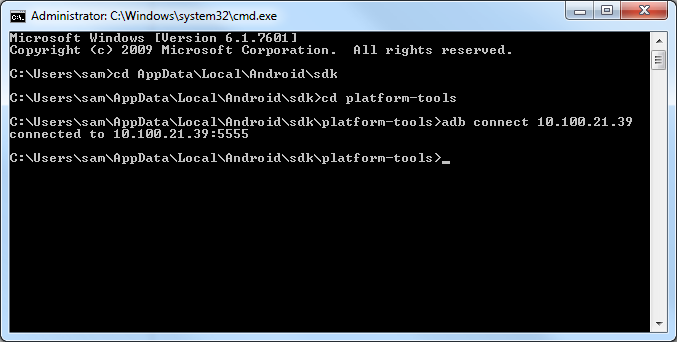 NOTE: If you are using a Mac or Linux, add a "./" before "adb".