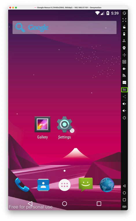 On the right side of Genymotion, in the black bar, click the icon titled ID, colored pink in the image above.An Identifiers box pops up, as shown on the right side in the image above.