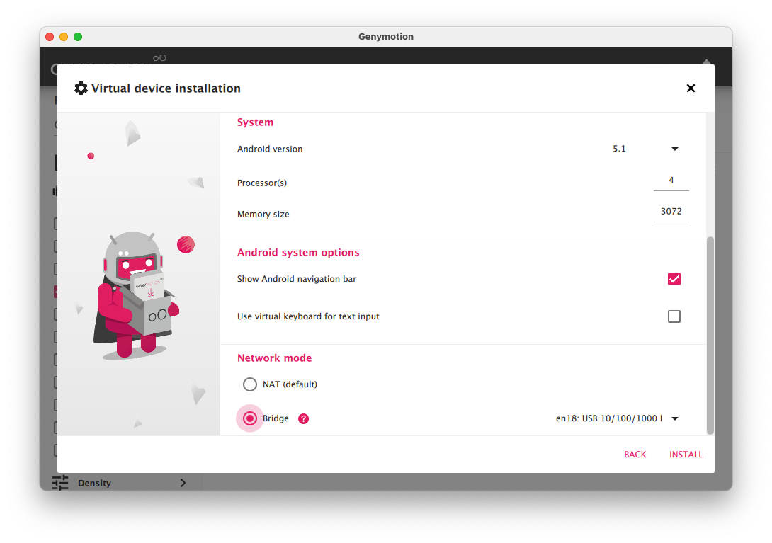 On the next screen, at the bottom, change the networking to Bridge and select the network interface that goes to the Internet on your host system, as shown below.