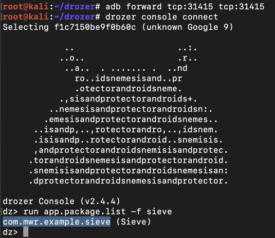 wget https://github.com/mwrlabs/drozer/releases/download/2.3.4/sieve.apk