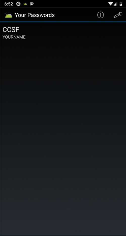 On your Android device, the "Your Passwords" page opens, as shown below.
