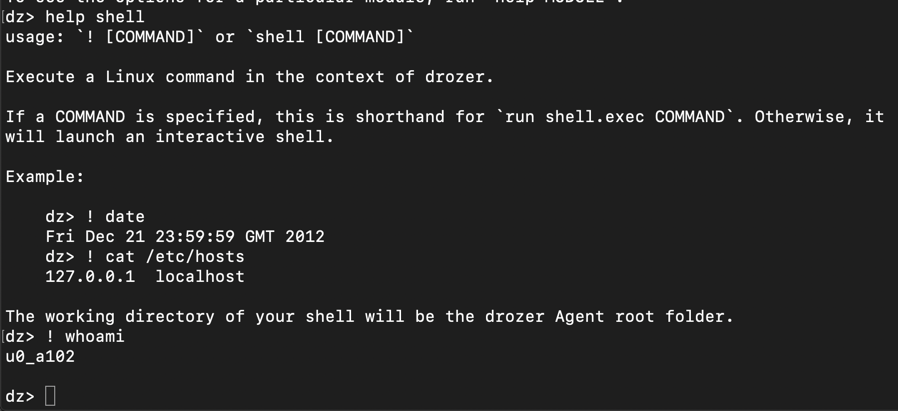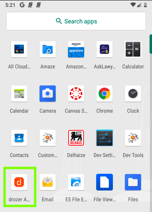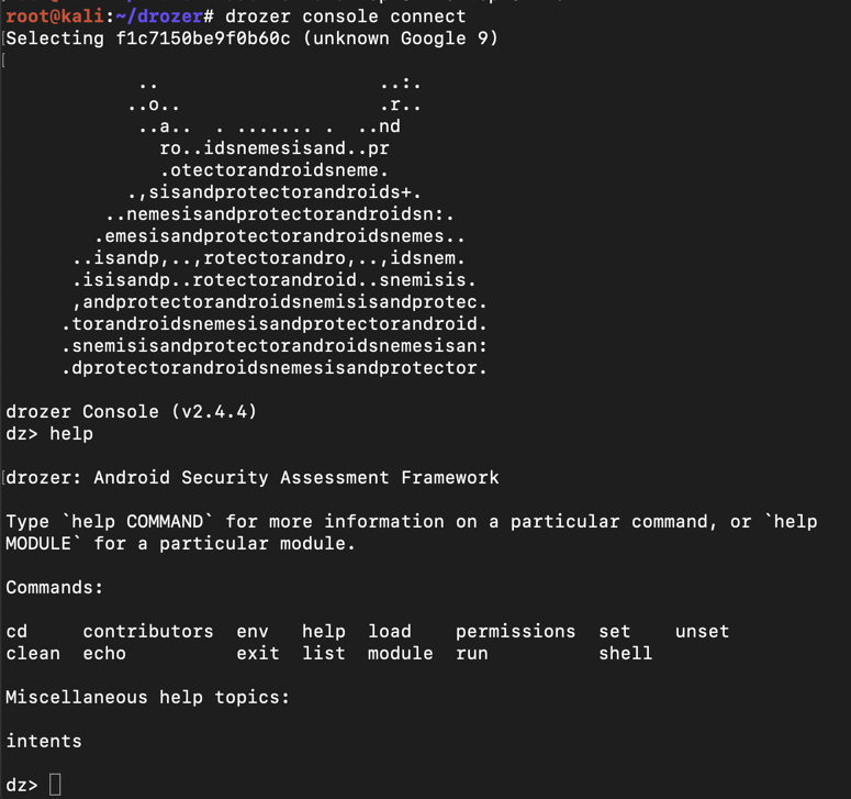 Position the Android device so that it remains visible while you execute the Dozer command below.