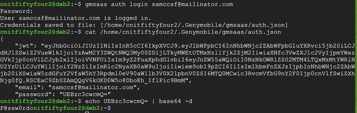 gmsaas auth login sam@mailinator.com
